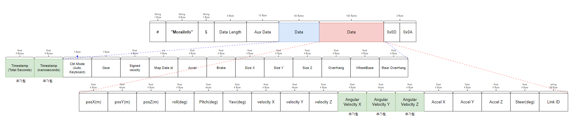 Simulator Network로 전송되는 UDP 메시지 및 각 메시지 별 프로토콜 정보는 아래와 같다.