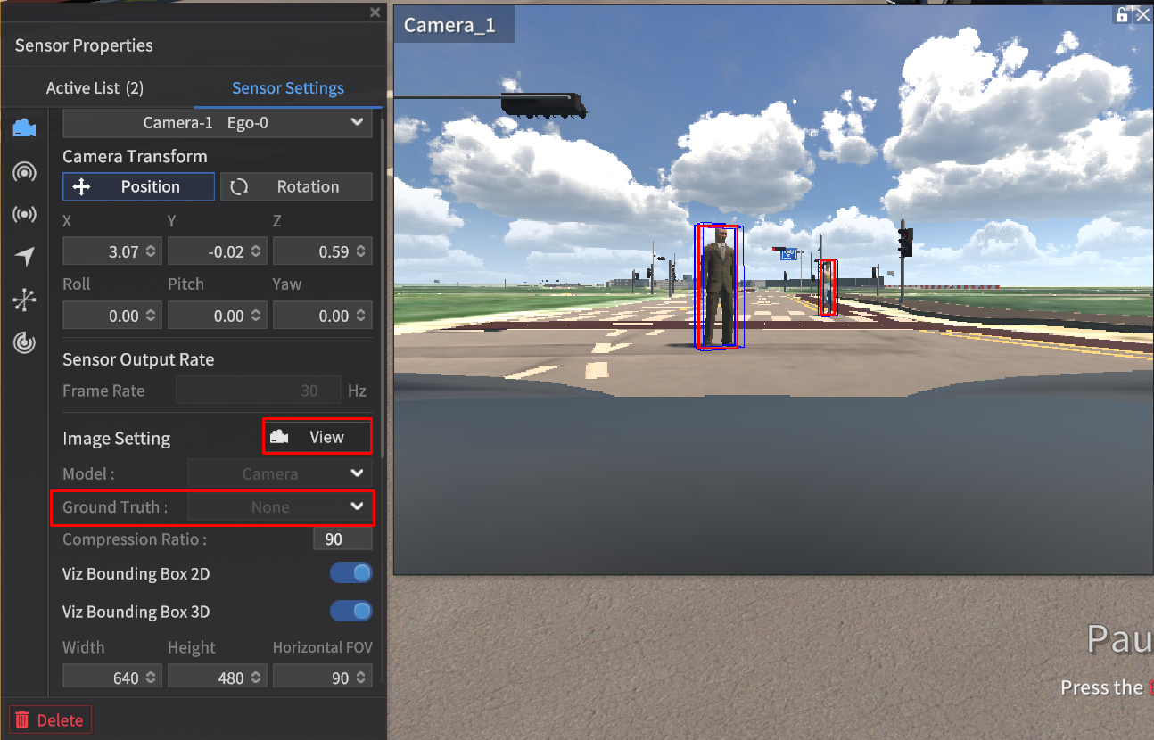 23.R1.0에서는 카메라 센서에서 검출한 객체의 2D/3D BBox 를 시뮬레이터 상에서 확인할 수 있는 Viz Bounding Box 2D/ 3D 기능이 추가되었다.