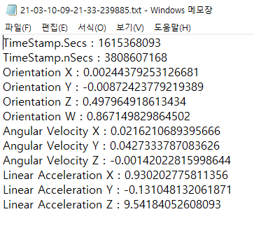 저장 위치는 SaveFile/SensorData/IMU_* 이며, 파일 이름 또한 저장한 날짜와 시간으로 정해짐