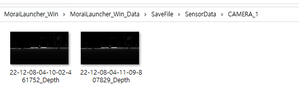 센서의 캡처 기능을 이용하면 검출 데이터는 {시뮬레이터 설치 경로}/MoraiLauncher_Win/MoraiLauncher_Win_Data/SaveFile/SensorData/CAMERA_* 경로에 저장된다. 이때 파일 이름은 이미지를 저장한 날짜와 시간으로 정해지게 된다.
