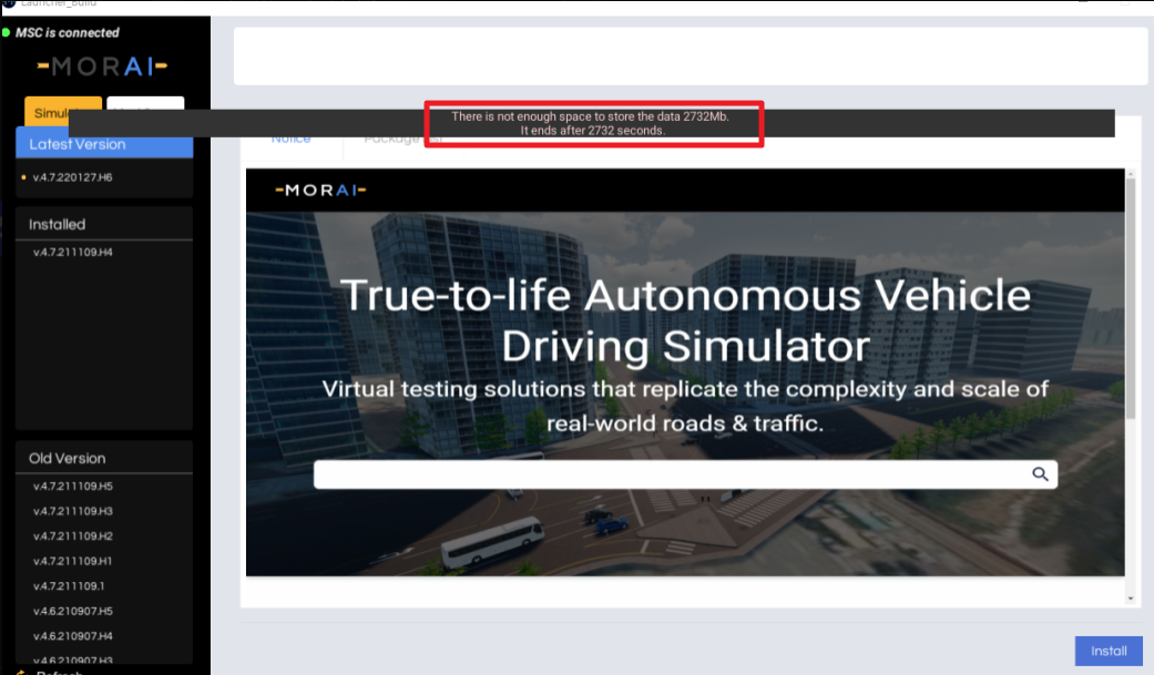 신규 버전 설치 시, 저장 공간 Memory 부족에 따른 Notice 내 문구 오류 개선