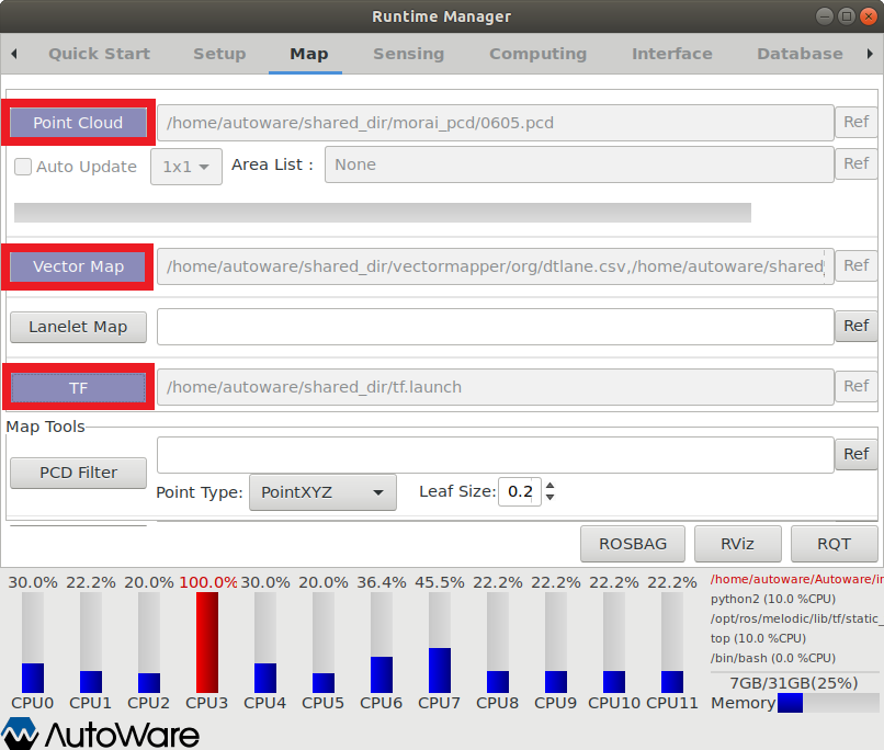 AutoWare 실행 화면