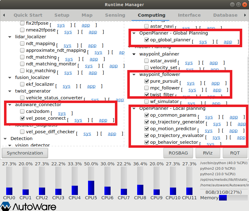 AutoWare 실행