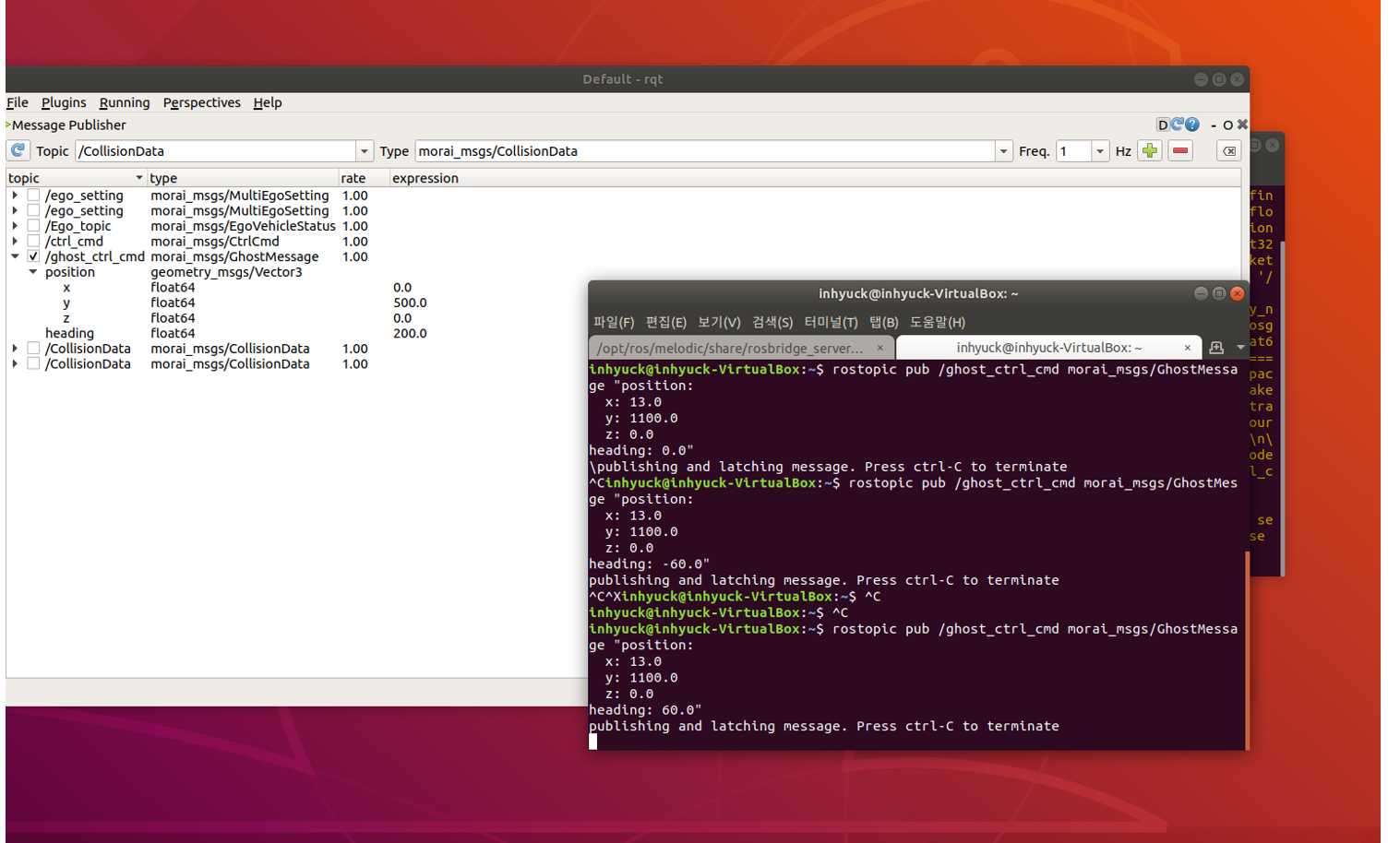 ROS 에서 /ghost_ctrl_cmd _Topic 을 Publish 함