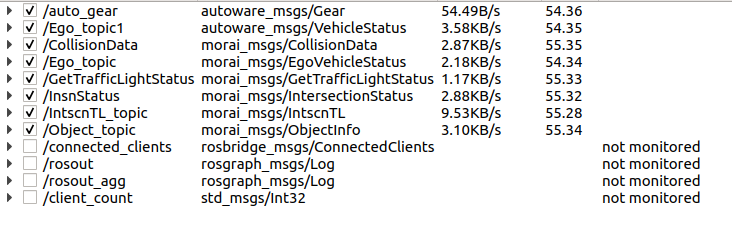 ROS 통신 환경에서는 rqt 도구를 활용하면 시뮬레이터에 전송하는 ROS 메시지 정보를 보다 직관적으로 확인할 수 있다.