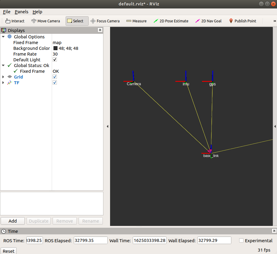 TF 설정 결과는 ROS의 RVIZ 기능을 통해 확인할 수 있다.