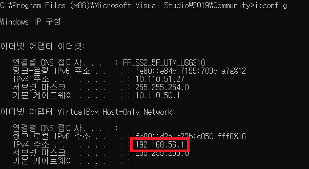 Window 터미널은 ipconfig Ubuntu 터미널은 ifconfig 를 입력