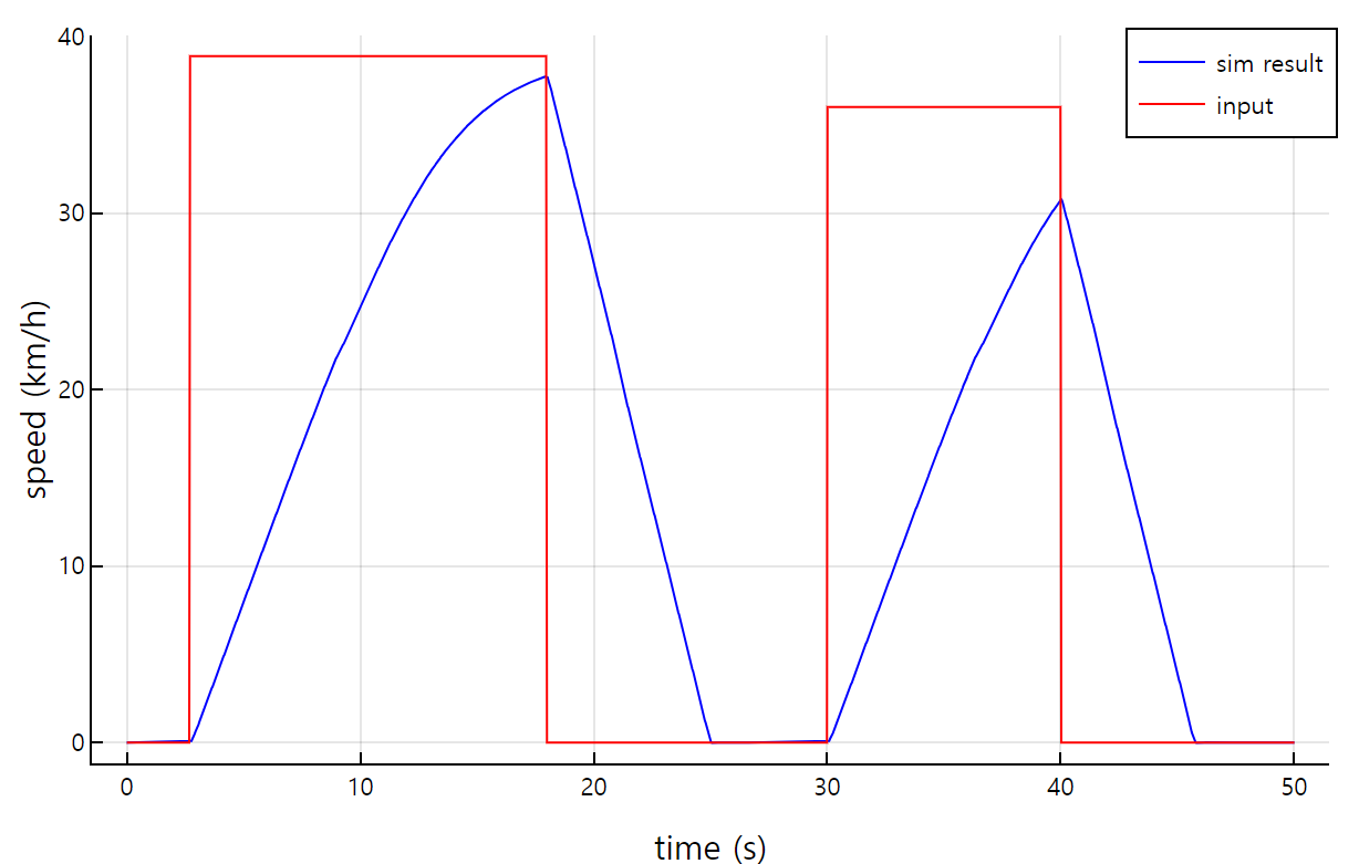 23.R.10 에서는 종방향 속도 제어 방식이 가속도 제어 방식으로 변경되어 속도 증가 시에는 1m/s2의 제한, 속도 감소 시에는 -2m/s2의 제한이 걸리도록 하여 한번에 갑자기 속도가 증가하거나 감속하여 채터링이 발생하는 현상을 방지했다. 따라서 아래 그림과 같이 불연속적인 속도 입력에 대한 반응 시간은 느려지나 안정적으로 목표 속도로 수렴하도록 변경되었다.