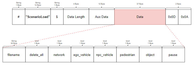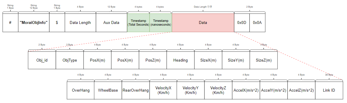 Simulator Network 로 전송되는 UDP 메시지 및 각 메시지 별 프로토콜 정보는 아래와 같다.
