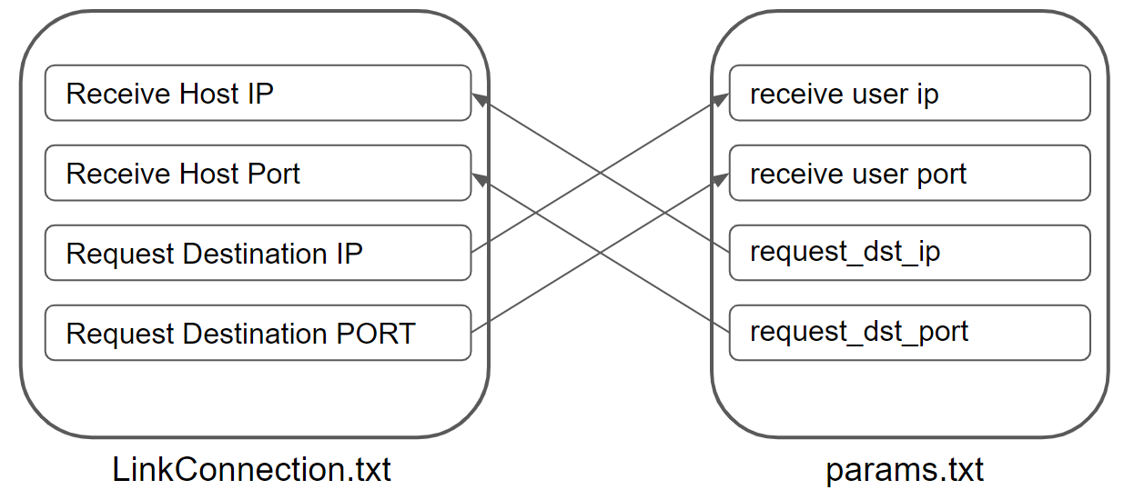 위 Step 2에서 정의한 params.txt의 파라미터와 LinkConnection.txt의 파라미터 간의 연결 관계는 아래와 같다.