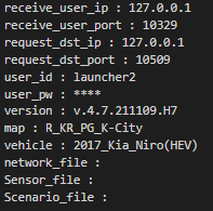 현재 Launcher 및 Simulator 환경에 맞추어 기입해야 하는 각 IP와 Port 정보는 아래와 같다.