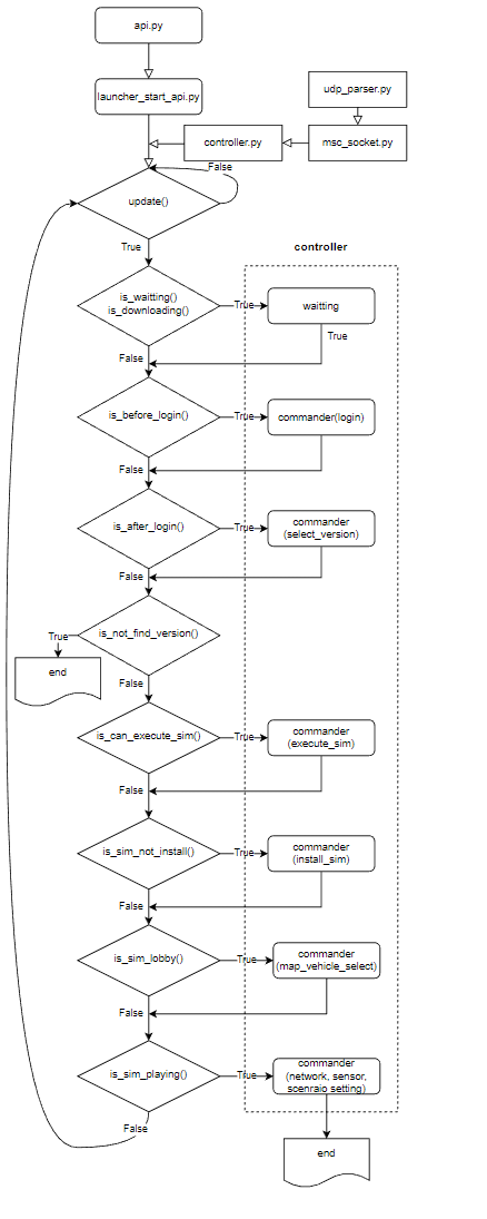 2] launcher_start_api.py에서 controller.py의 controller class method인 commander( ) 로 시뮬레이터 실행 명령 수행