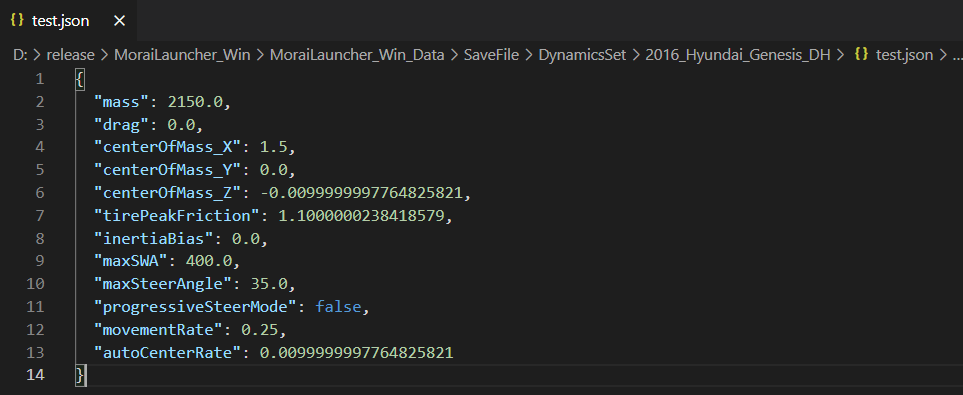 -Directory : \MoraiLauncher_Win\MoraiLauncher_Win_Data\SaveFile\DynamicsSet\선택한 차량 이름\