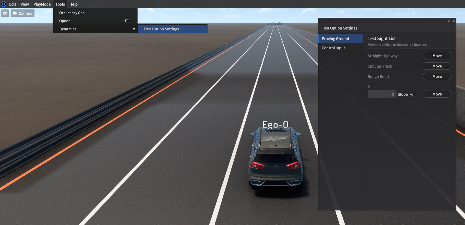 원하는 구간과 원하는 제어 입력으로 Vehicle Dynamics Test 가능한 기능이다.