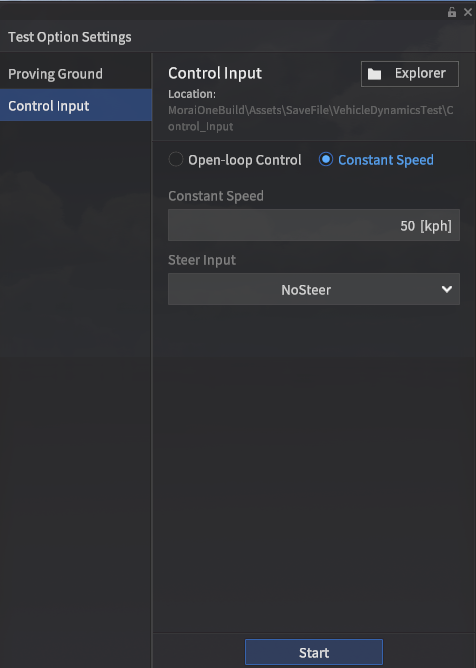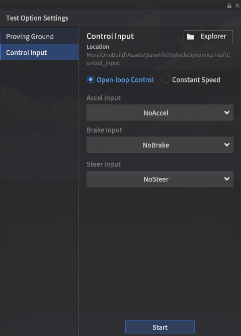 Accel, Brake, Steer 제어 입력을 유저가 .csv 파일 형태로 Customize 가능.